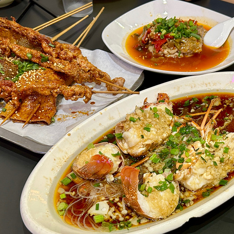 融景城附近的一家海鲜大排档,新鲜现做,店里还可以点烧烤~ 小青龙和海肠捞饭可以团购,更划算! 秦老头海鲜铺
