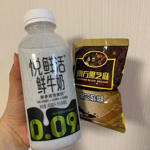 上个月突然很馋黑芝麻糊 就买了 但是我一直没有杯子拿热水冲 于是突发奇想 直接到在牛奶里 黑芝麻牛奶诞生 真的很好喝
