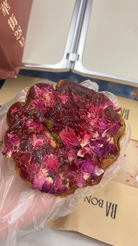 BA的这个鲜花系列,在昆明的时候看到了,一发不可收拾,坐高铁前一晚买了三个带走,上车半小时就逐一消灭,蛋挞真的好香好好吃,贝果鲜花味儿淡点,但里面的奶酪不错
