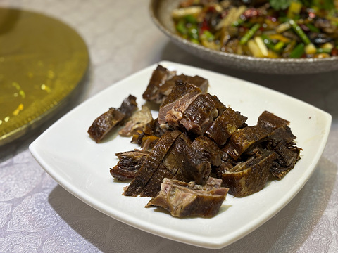据说是老店了,尤其是熏鹅,那么就要来一探究竟这种老店经常接宴席,所以小聚还是尽量找个包房,不然闹麻第一口当然是熏鹅,鹅肉口感细嫩,卤香味浓郁,但带的甜味我个人感觉稍重了一点火爆系列口味不错,泡椒味型的,火候刚好,又脆又嫩糯米板鸭的糯米比较厚,外壳焦脆,比老来福厚得多,就是有点粘牙,板鸭也香另外的招牌菜沙滩牛肉说不上来,口感是好的,也是外焦里嫩,味道说不出来,没什么印象了还有那个滑肉,放了酸萝卜丝一