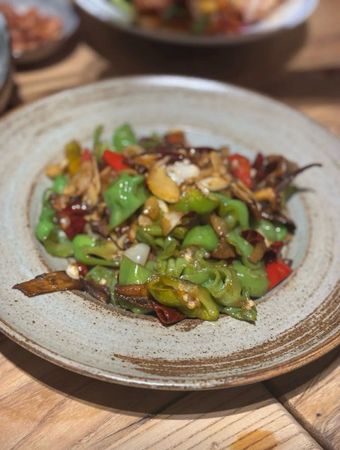 奔着云南菜去的,说实话,有点失望四个人,421。没吃好一开始点了柠檬虾,薄荷排骨,炒见手青,炒黄牛肉。酸柠檬虾不入味,调料如同浮在表面,虾子到还行,比较Q弹薄荷排骨也一样,就是油炸排骨而已,没啥味。传说中的见手青99一份,就吃出来辣椒炒菌子的味道。问了下店家,说是什么白见手青,具体什么我也不懂。炒黄牛肉算可以了,适合重庆口味。但份量偏少,就垫了个底,都没吃饱。后来加了油炸玫瑰花,烤鱼和什么肉末,再