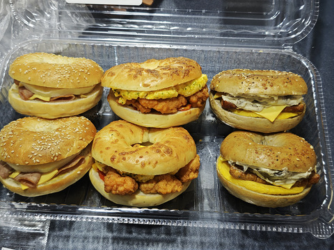 贝果三明治组合6个装 74.9一份折合12.5一个,买之前感觉挺贵但是跟面包店一个基础款都差不多12的样子也就不贵了,何况山姆这款还夹了肉蛋芝士什么的