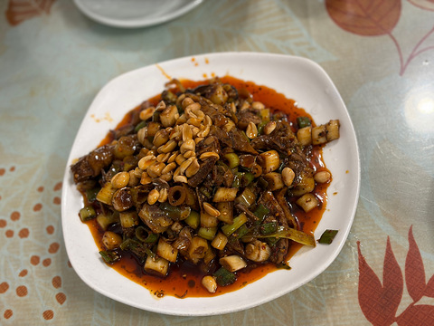 之前在南坪上海城有一家漆家鸡,白砍鸡味型,麻辣香甜,记忆犹新,最近路过石油路这边,也发现一家,勾起往事,就进来试试。二个人,二个菜,漆家鸡,瓦块鱼鸡上桌后,先观其形,有点不好看,黑秋秋的,加了很多黄葱和花生米。心里嘀咕了一下,别走眼了哈,在试试味道,还行,味道的话说不出来哪里突出,也没什么不足。但吃了几口,就忍不住吐槽了。看上去一大盘子,几乎全是葱,少有的几块鸡,不仅小,还都是骨头,关键是骨头也没