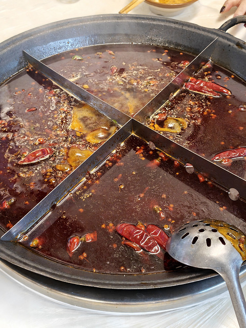 国庆节娃娃的爷爷从甘肃来重庆相聚过节,为了庆祝节日选择了家附近新开的一家火锅店,看某评上评论还行。那就去试试看~南北家人组合的火锅局每当这种时刻的必定就是鸳鸯啦~(重庆人底线的微辣就坚持不住啦[/11笑哭])直接上图~感觉鸳鸯锅就是外面红汤煮菜了不太方便夹菜,只不过中间那个锅沿高一些能避免红汤沸腾跳进去还是科学。 大刀腰片 鲜毛肚 鲜鸭肠