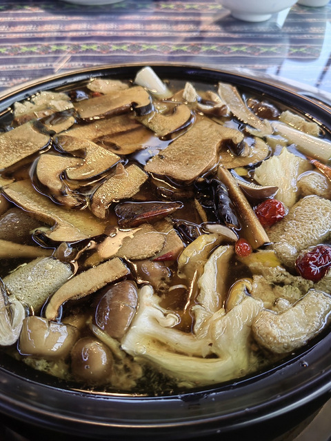 直接上图,价格和店名都有,我们是四个大人,一个小孩,加了一份豌豆尖和松针牛肉包,牛肉包还可以,不过吃得入神,都没照相,借用网友的看看