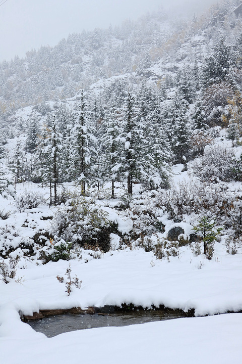 接前面的看秋景变看雪景很多年没看到过得鹅毛大雪在新都桥遇到了有点激动有点头痛不晓得去哪里耍了而且回程还封路哦豁最后就是四个人找个藏餐吃吃吧先来点雪景