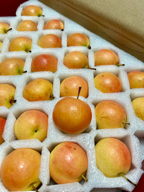 东北朋友寄给我的,说是鞍山特产,小小一个,打开箱子果香味很浓,说是要放软再吃,吃起来软烂、有股酒香味,很神奇的口感