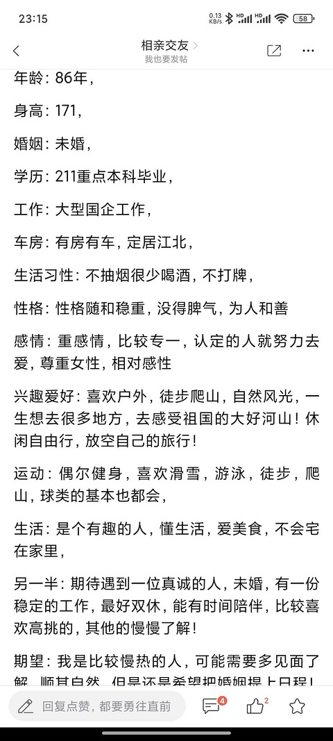 90年单身未婚一米七体重135重庆南岸区有房有车月1万2征婚