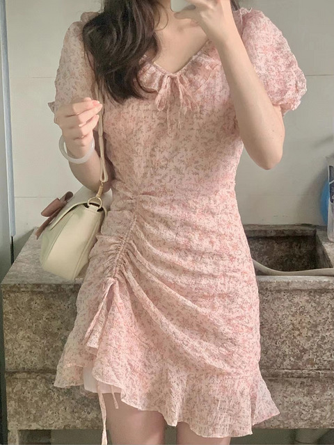 粉色碎花裙也太适合夏天啦这个版型面料设计我真的巨巨巨喜欢很适合我们这种腰细胯大的女孩子~