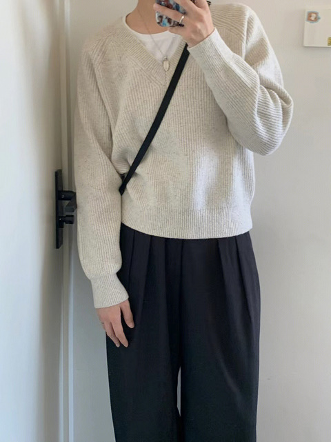 杂色毛衣配黑西裤,好看不出错