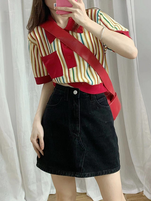 这件彩虹针织T恤好夏天啊!搭配短裙绝了