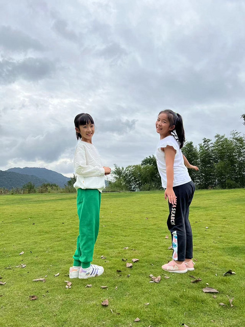 这个绿色真好看,太养眼了,衣服裤子我大女都很喜欢,裤子超级赞,而且还便宜