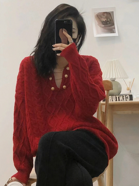 红色毛衣真的太显白了! 很有复古贵族气质