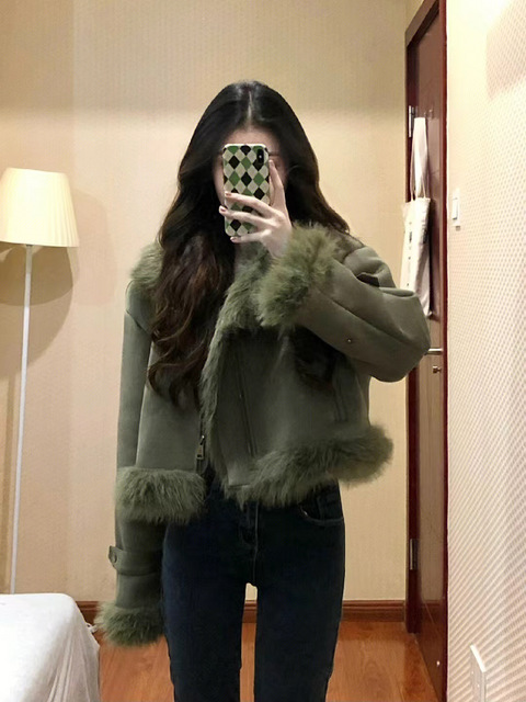 自带质感的绿色毛毛外套!显白绝了