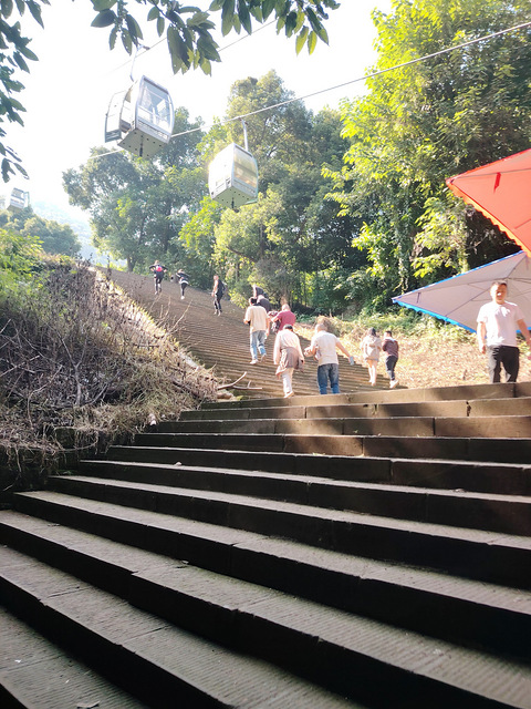 公交一日游第二站:歌乐山 重庆的秋天本来就短,今年尤其短,都已经在准备厚衣服了,今天突然放晴了,明媚的阳光怎么能辜负?中午临时决定去爬歌乐山!说走就走了!Let's go !217换821,白市驿到歌乐山索道下站!开爬! 说实话,没想到一上来就是这么陡的梯坎,好在全部是条石路,忽略对体力的考验的话,算是非常好走的啦!路上已经可以看到山下的城市啦! 没想到更惊艳的还在后面! 五彩斑斓的秋天此刻具象化了! 在这里才发现前面有个 角落里的狗尾草 2025-10-28 19:49504 10
