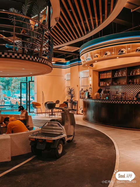 偶遇一家主题咖啡店,叫“Arai头盔博物馆” 里!一整面墙的限量版头盔,满满的工业风与潮流感碰撞,随手一拍就是科技感大片!=喜欢机车和工业风的,每个角落都是绝佳取景地,真的很出片,咖啡,品质和颜值都在线。运气好可以偶遇热辣机车小姐姐哦