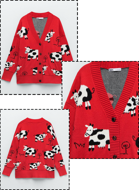 我开始在看春装了,发现了Zara的新款我居然被种草了好几款ZARA家的针织外套和针织马甲一直是它家近两年的热门服饰,所以在这次的新年限定系列中,它家也推出了奶牛印花的红色针织外套。