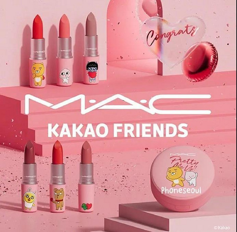 MAC x KAKAO FRENDS 联名情人节限定,和之前的联名无区别,只是换了底色... 把底色从黄色换成了粉色,也是很省事了...不过也是超好看的哇