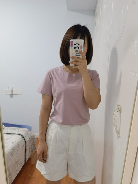 藕粉色丝光棉短袖质报【随手晒包裹】