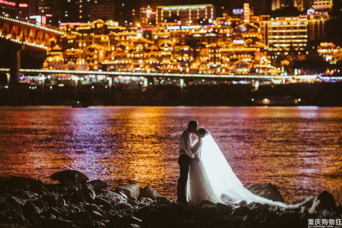 婚纱照从早拍到黑,只为拍洪崖洞夜景+【卡萌秀出婚纱照】