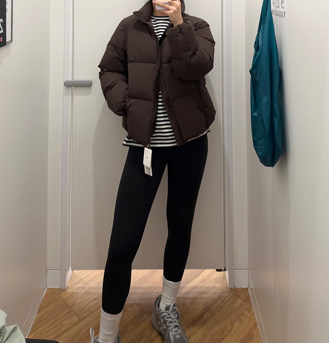 优衣库巧克力色童装羽绒服,没想到身高160穿也很合适!