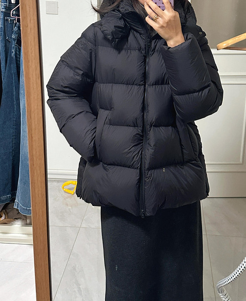 江南布衣羽绒服果然还是黑色好看纠结很久买的M码,感觉正好,比白色显瘦