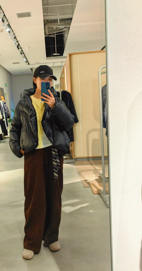 我每天都把自己裹成粽子因为怕冷不怕热,今日穿搭,这个是江南布衣23年的面包服款搭配深咖色灯草容裤子