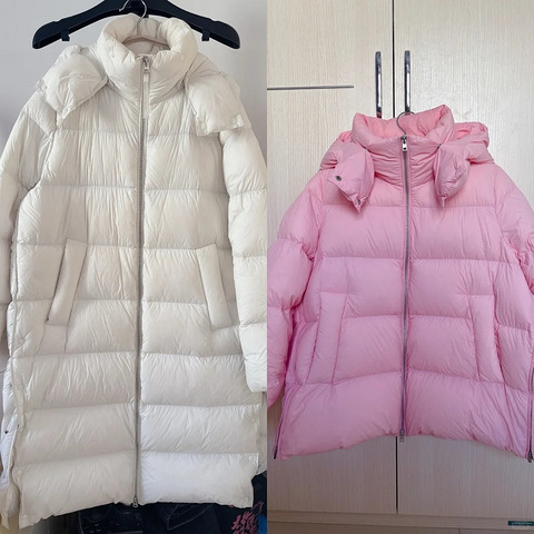 习惯性每年在江南布衣买两件羽绒服,今年依旧十月份就买好了一长一短两件。本来不想买粉色了,没有米色或者白色好搭配,但之前买的粉色泡芙挂阳台时间久了袖子晒掉色了,又买了这件,穿的次数不多,更多时候会穿去年的白色同款。白色这件特别成功,穿上可好看了,长度到膝盖保暖在线,今年冷冬,最近一个月几乎天天在穿,已经有些脏了,实在离不开,只能靠羽绒服湿巾擦擦领子对付着续命。