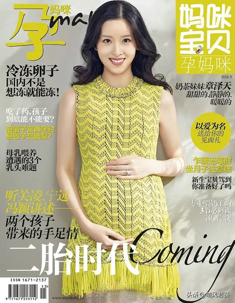 章泽天二胎挺孕肚登杂志封面,皮肤白皙,手戴婚戒,容光焕发