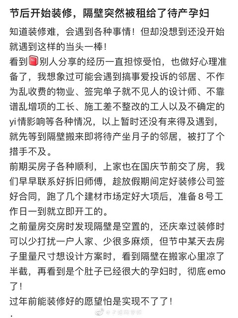 节后开始装修,隔壁突然被租给了待产孕妇?
