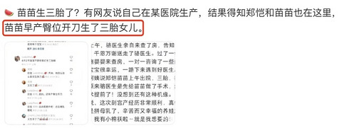 娱乐圈又多出一个新孩子?有网友爆料称苗苗已经生下三胎,而且还是女儿。