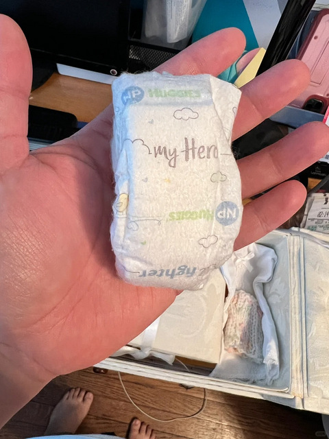 你见过最小的尿不湿有多小 ?冲浪时这图惊到我了不过原博主解释:这个尿不湿是医院送给我留作纪念的,当时的宝宝是24w检测出染色体有问题引产掉了。医院给这个大概就是留个纪念加大概知道下娃有多大