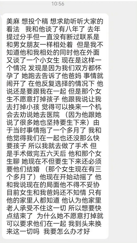 也是绝了,在网上看到的投稿男朋友让这个网友和另一个女生同时怀孕现在网友打了孩子,另外一个女生没有打,还想要结婚现在网友不知道怎么办了[ej=1F633]