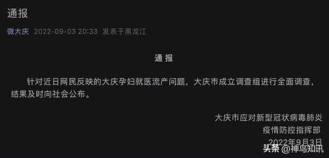 转自神鸟知讯 据微大庆微信公众号9月3日晚消息,针对近日网民反映的大庆孕妇就医流产问题,大庆市成立调查组进行全面调查,结果及时向社会公布。