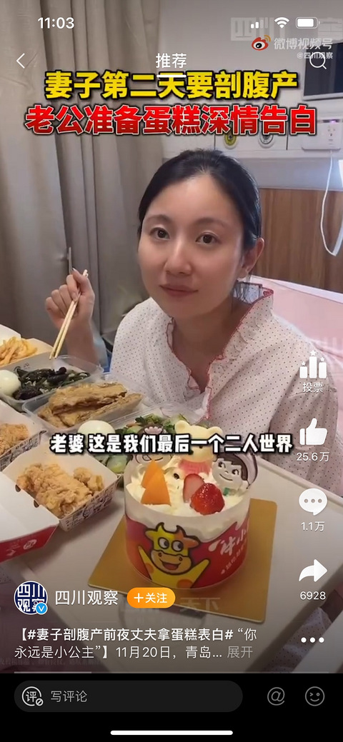 妻子剖腹产前夜丈夫拿蛋糕表白:你永远是小公主