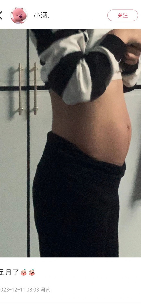 真的太不可思议了,这肚子居然已经足月,原作者说宝宝8斤,重点还是前壁。估计很多姐妹吃饱的肚肚都比这足月的孕肚大吧