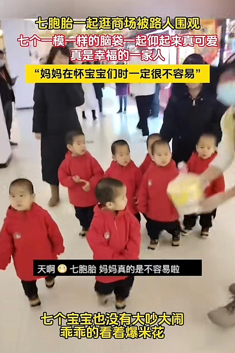 七胞胎一起逛商场,像葫芦娃一样排排站!太可爱了!