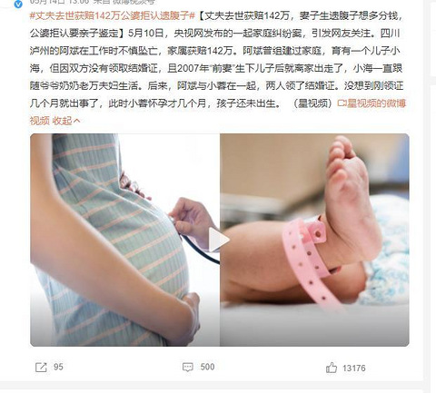 5月10日,央视网发布的一起家庭纠纷案,引发网友关注。四川泸州的阿斌在工作时不慎坠亡,家属获赔142万。阿斌曾组建过家庭,育有一个儿子小海,但因双方没有领取结婚证,且2007年“前妻”生下儿子后就离家出走了,小海一直跟随爷爷奶奶老万夫妇生活。后来,阿斌与小蓉在一起,两人领了结婚证。没想到刚领证几个月就出事了,此时小蓉怀孕才几个月,孩子还未出生。