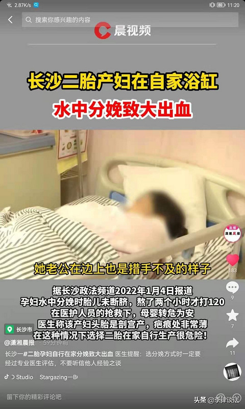 近日,湖南长沙发生了一件让人心惊肉跳的事。 一女子怀了二胎,在家中的浴缸里自行分娩,胎儿产出后导致大出血,丈夫在旁边吓得手足无措,把人抬到沙发上,眼看屋里一地狼藉,沙发上的妻子兀自血流不止,折腾了半天也搞不定的他才想起来拨打120,这时距离孩子娩出已经过去了两个小时。母婴被送医后,经过医务人员的全力抢救,才得以转危为安。 真是无知者无畏。头一胎是剖腹产的孕妇,子宫上的疤痕处非常容易在生产过程中破裂