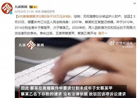 夫妻离婚要求分割2孩子26万压岁钱 法院:应归未成年人本人所有