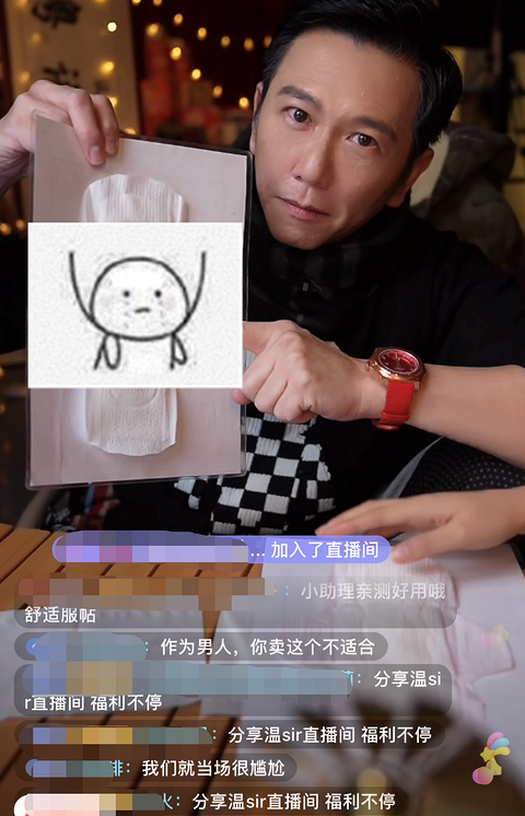 我始终还是不能理解,一个大男人带货女性用品,怎么想的?还有以前一些女性用品商家总找男的来打广告,也是不能理解。我记得之前看李佳琪直播间的时候,到卫生巾、内衣这种比较私密的女性物品直播时,他都会走开,让助理妹妹来播。转自盖饭娱乐官方号。 1月23日,著名TVB演员温兆伦直播带货,向粉丝推销女性用品,并且还亲手展示着它的吸水性,场面十分尴尬,引发热议。