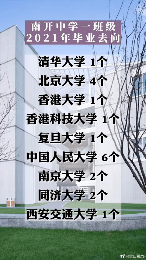 羡慕!2021重庆南开中学一班级的毕业去向,清华大学1个,北京大学4个、香港大学1个、香港科技大学4个! 看了之后,果然,重庆人都不屑考重大哈哈哈,一个重大的都没有。