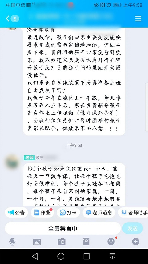 数学老师发群里的一段话,辅导娃儿还得家长自己来