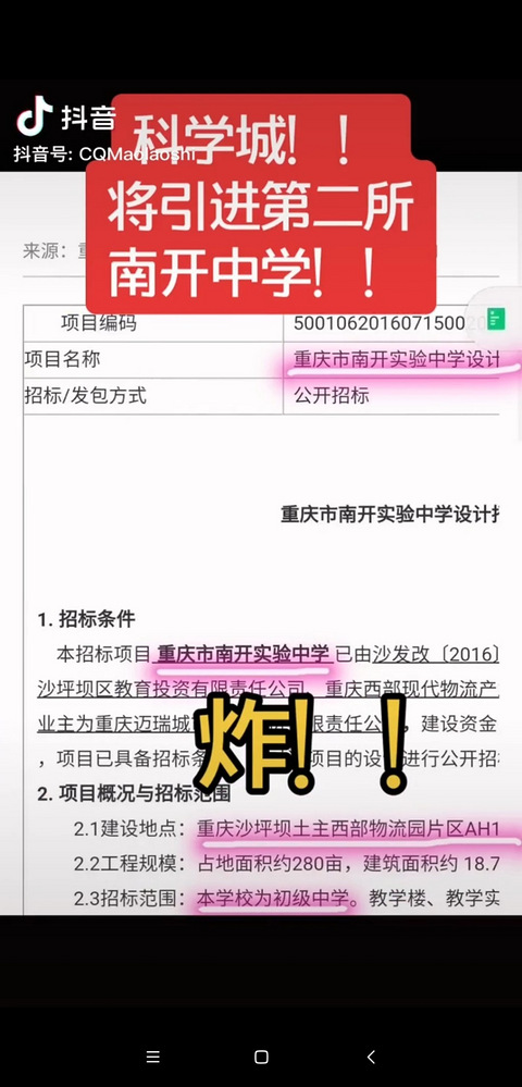我正在参加12月学校龙门阵,你也一起来吧https://go.cqmmgo.com/forum-462534-thread-47071606786148445-1-1.html” 刷抖音看到这个,一份招标书,南开实验中学设计,地点在沙坪坝土主西部物流园片区。 南开中学也要进科学城了??如果是真的那还真挺炸的,你们期待吗[ej=1F604]