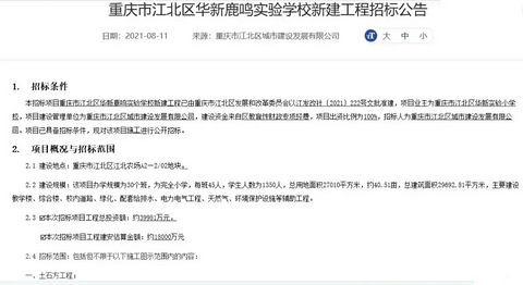 网友爆料,江北区华新鹿鸣小学开工啦!据说计划2023年就要开学招生。 项目总投资约39981万元,该项目办学规模为30个班,为完全小学,每班45人,学生人数为1350人,总用地面积27010平方米,约40.51亩,总建筑面积29692.81平方米。 主要建设内容:包括教学楼、综合楼、道路、环境、绿化及配套设施设。