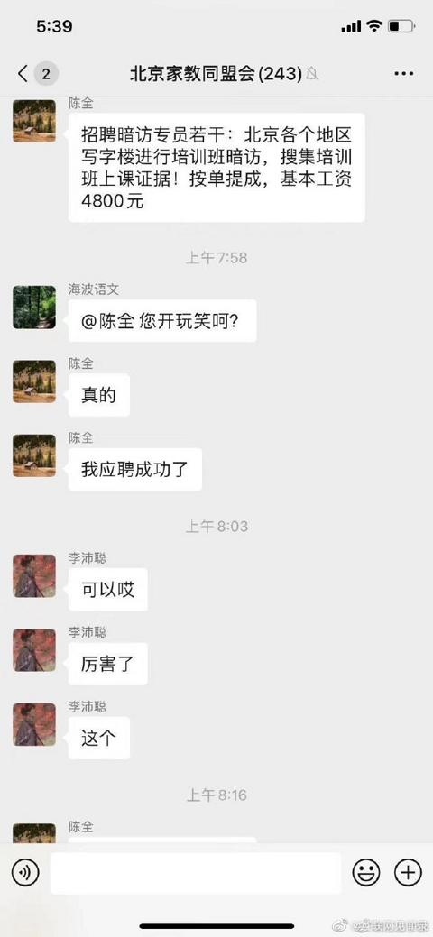 家长联盟招聘专职巡视员,暗访举报PX班,4800元一个月