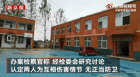 9月28日,河南太康县检察院回应“小学校长反击闯校园醉汉致伤被捕案”,称该案经该院检委会研究意见一致,认定两人为互相伤害“打架互殴”案,无正当防卫,两人均已被逮捕羁押。6月21日,太康县男子彭某峰酒后闯入杨庄小学与校长王某峰厮打,后两人均被拘。 ?