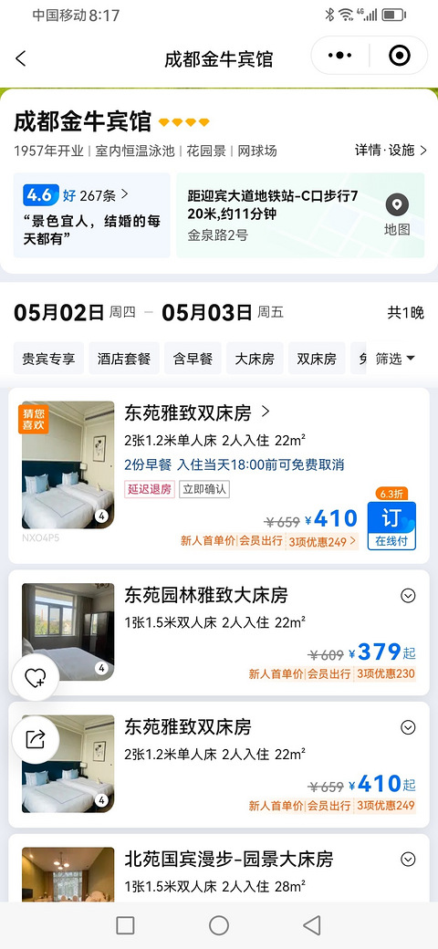 五一期间金牛宾馆和渝州宾馆的人气,价格对比