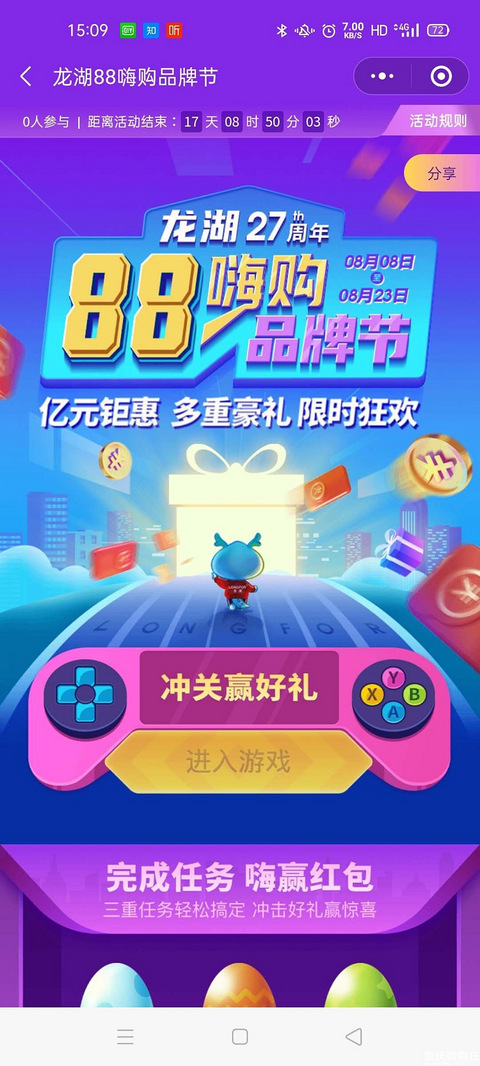 想要下叉龙湖嘉天下,之前去看过好几次,感觉价格还是贵了些,有点犹豫,一直在观望中,没敢下手,前天置业顾问给我打电话,讲这这个周末要搞啥子嗨购活动,有优惠,叫我去看哈。了解之后确实优惠不少,说是嘉天下买房子要打97折,要比之前便宜嘿多,还可以抽大奖,有华为手机关键是最高直减10万,算了哈,再囊个迈也少了一大半的装修费出来撒,周末还是去看哈,不晓得这个趴活能不能捡