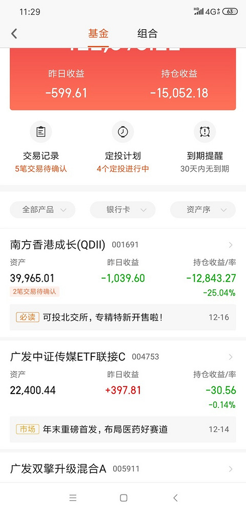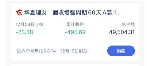 这日子没法过了,我买的不是股票是银行理财啊!!我打算把招商银行里面的理财全部取出来了,太坑了,我买的又不是那种基金,就是这种最基础的月月宝,而且我存银行卡里的钱本身就是股票之外的现金持仓,灵活性是我最看中的,要么活期要么1个月的,我根本没指望什么收益,现在倒好,给我倒亏钱,我存你m呢,我存这狗地方还不如直接放证券账户,每天买逆回购不香嘛